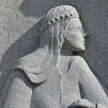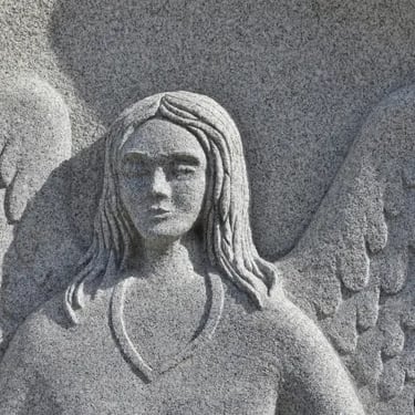 Cet monument en granit se dresse en arrière-plan d'un autel extérieur.