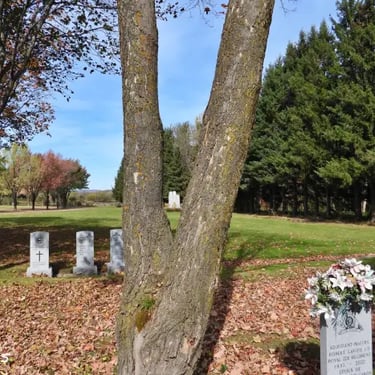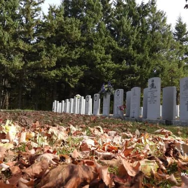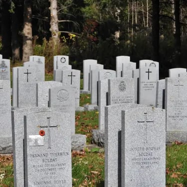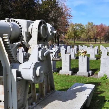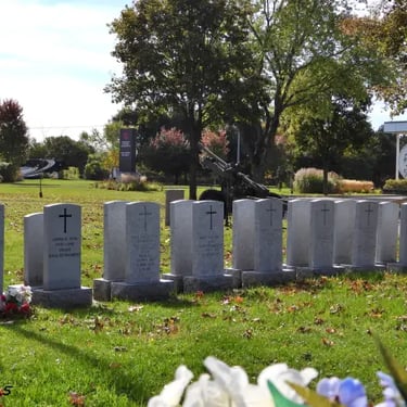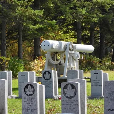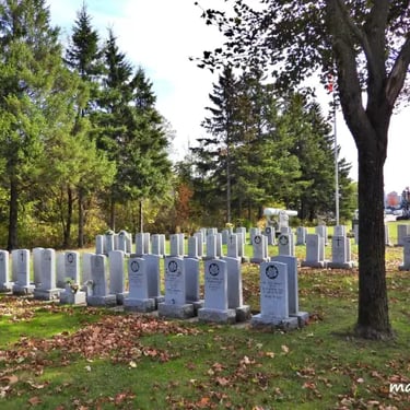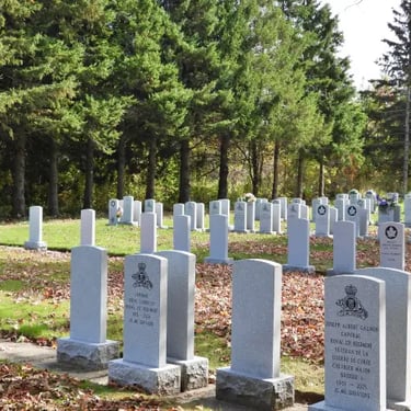 À l'extrémité nord-ouest du Cimetière Saint-Charles, le section militaire est marquée par un mât sur lequel flotte le drapeau canadien.