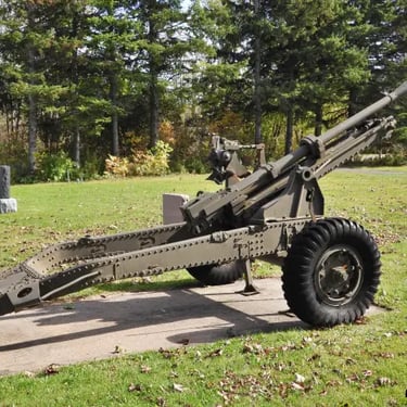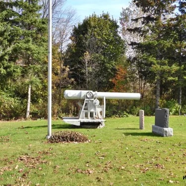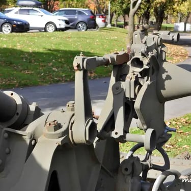Deux canons offerts par le Musée du Royal 22e Régiment identifient le secteur militaire à l'est, le 13 septembre 2003.