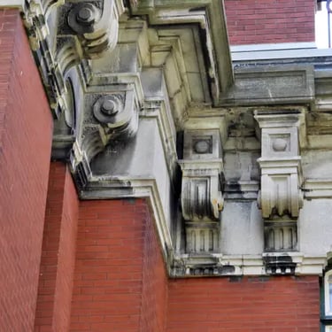 La façade de l'édifice donnant sur le boulevard Langelier illustre parfaitement l'architecture Beaux-Arts richement décorée.