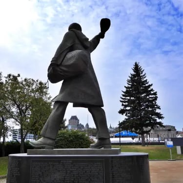 L'œuvre émotive « Hommage aux marins », localisée dans le Vieux-Port de Québec, honore avec ferveur les marins et leur engagement vis-à-vis la navigation sur le fleuve Saint-Laurent.