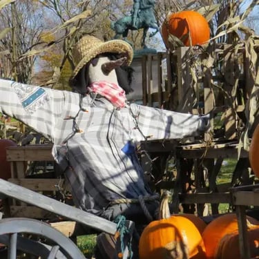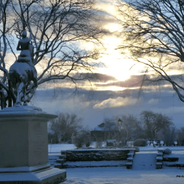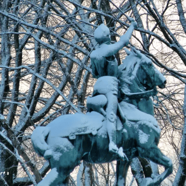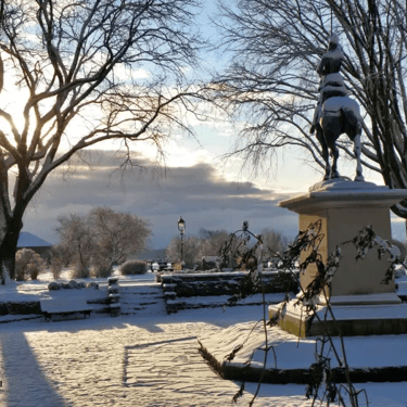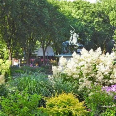 Au centre trône la statue équestre de Jeanne d'Arc, offerte par un couple d'Américains en 1938 pour célébrer le courage des héros de 1759.