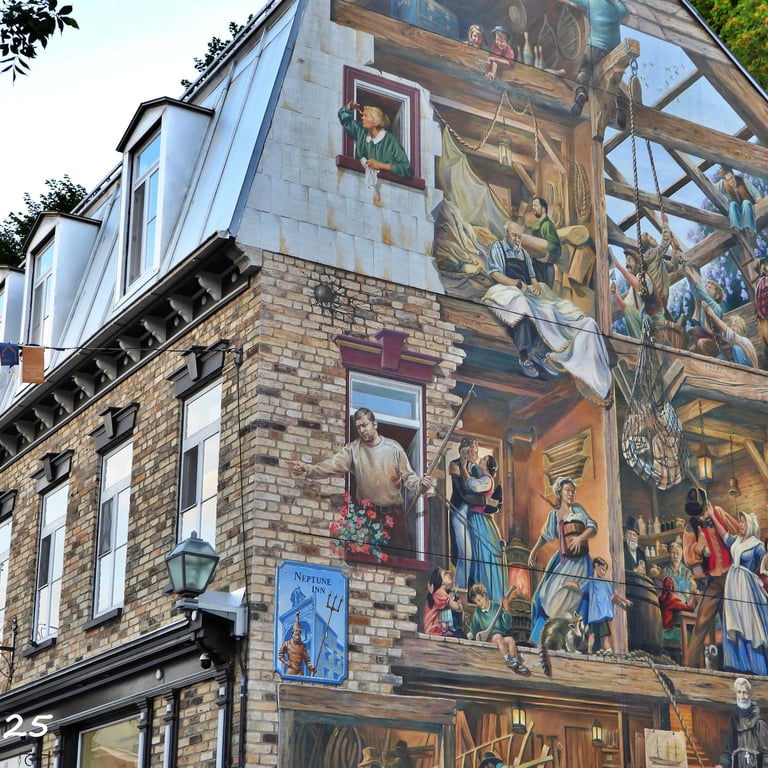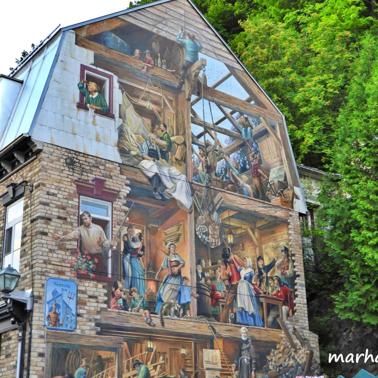 La Fresque du Petit Champlain, positionnée dans le quartier historique du Vieux-Québec, est un superbe tableau qui honore l'histoire et la culture de la cité.